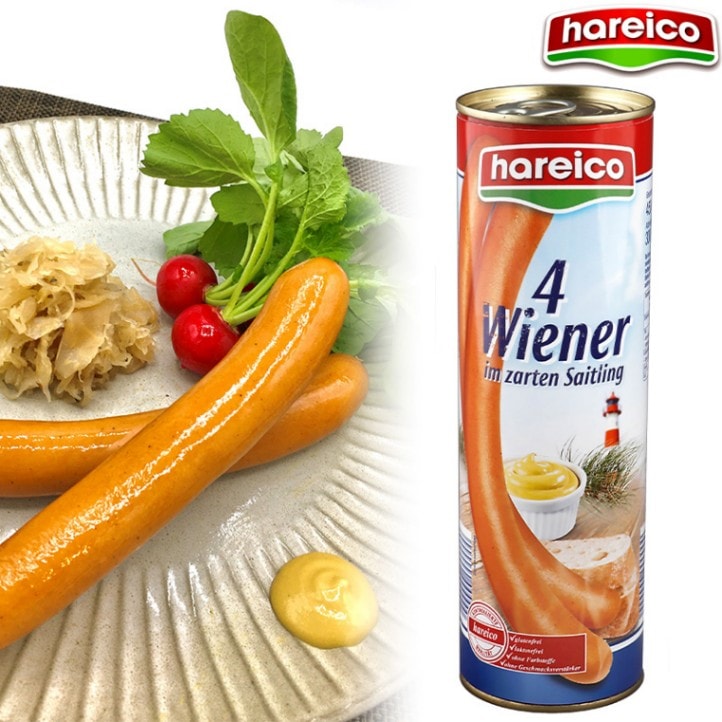 Hareico ハライコ ウインナー300g缶詰 老舗メーカー ドイツ製 4本入 保存食 アウトドア 本場 ドイツ土産 BBQ 海外 輸入食品
