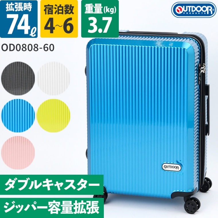 OUTDOOR PRODUCTS OD-0808-60 64.5cm 最大74L 6泊 容量拡張 スーツケース 無料預入受託 TSAロック 8輪 軽量 ダブルキャスター YKK アウトドアプロダクツ