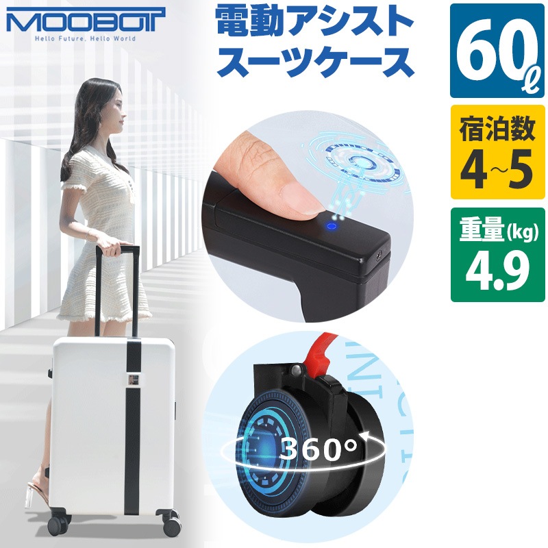 電動アシストスーツケース MOOBOT M ムーボットMサイズ 受託手荷物 5泊 USB充電 静音ダブルキャスター TSAダイヤルロック PSE認証 フレーム ハードケース