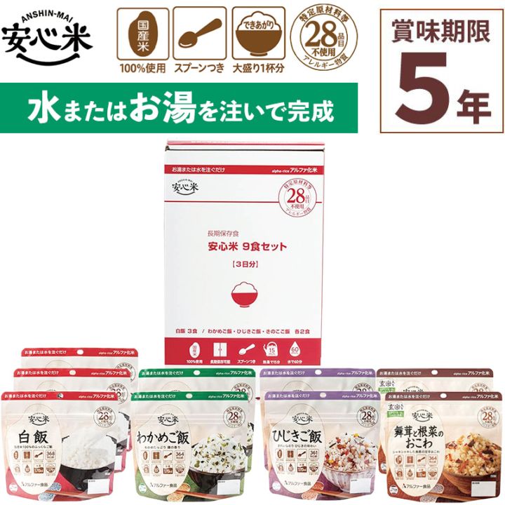 非常食セット 安心米9食セットN1 9食入 アルファ米 賞味期限5年 100%国産米 アレルギー対応 登山 キャンプ 備蓄 保存食 災害食 アルファー食品