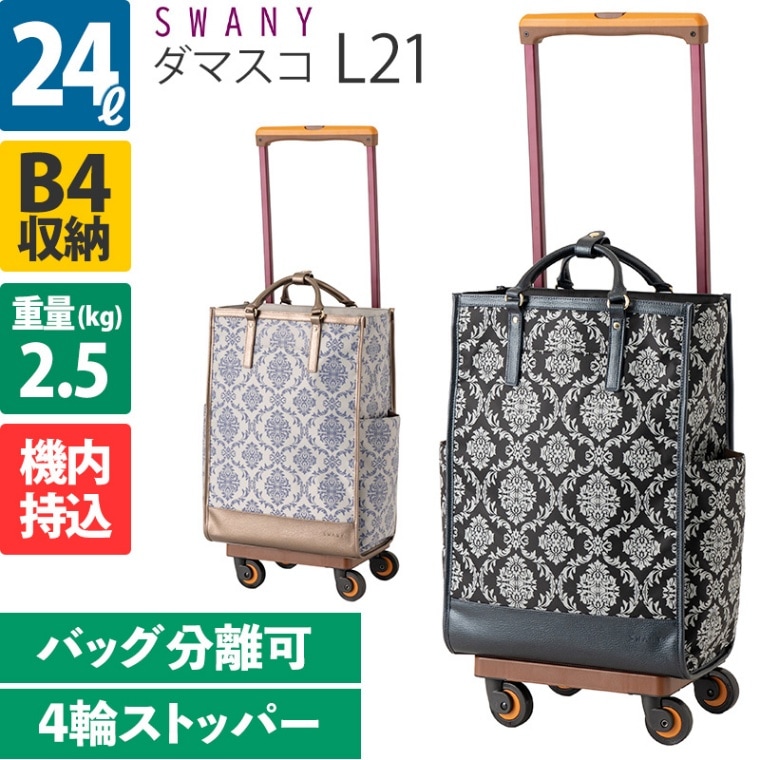 スワニー D-543 ダマスコ L21 24L 4輪ストッパー ソフトキャリーケース キャリーカート キャリーバッグ 買物カート 機内持込 着脱 SWANY