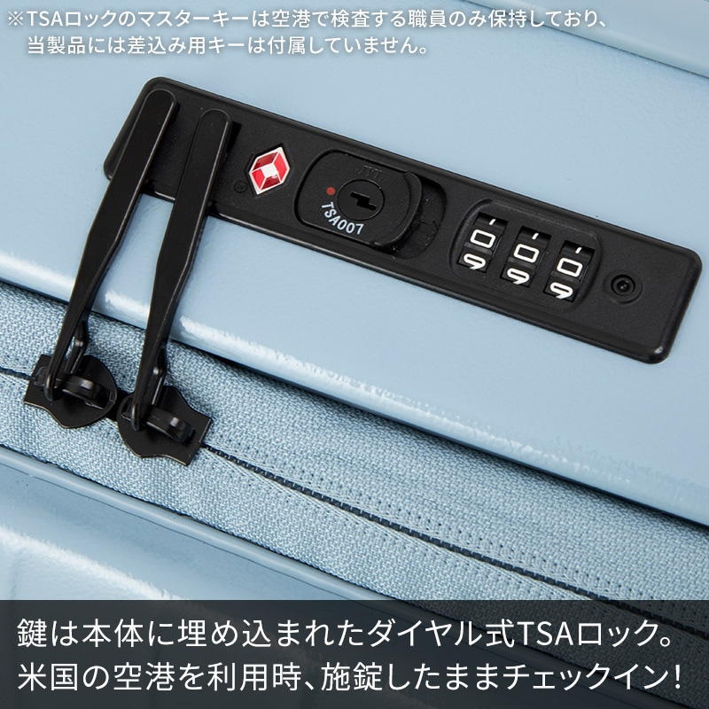 ※TSAナンバーロックの鍵は空港で検査する職員のみに与えられており、製品に差込キーは付属しておりません。通常使用時の開錠はお客様が設定した番号で行います。