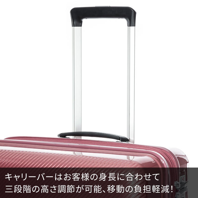 その他にも安定性に優れたダブルホイール、米国旅行時に便利なTSAロックなど充実の仕様です。