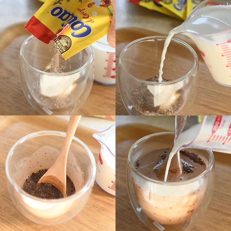 1.耐熱グラスにColaCao(コラカオ)を入れる。