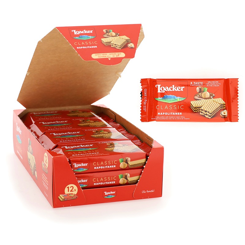 自社ローストした100%イタリア産ヘーゼルナッツのクリームを、3層のクリスピーウエハースでサンド。独特の香ばしさがたまらない。