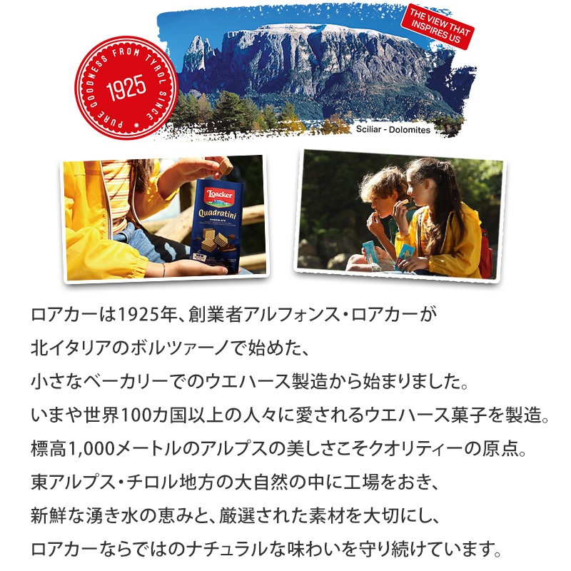 1925年イタリアで創業されたロアカーは、東アルプス・チロル地方の大自然の中に工場を置いており、ナチュラルな味わいを守り続けています。