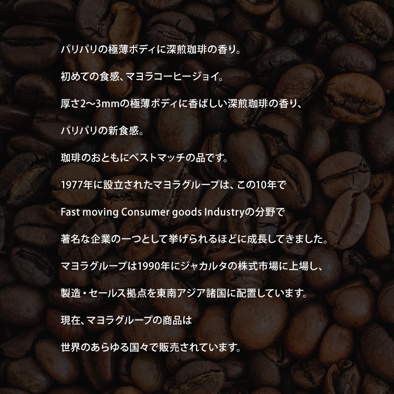 厚さ2〜3mmの極薄ボディに香ばしい深煎珈琲の香り、パリパリの新食感。