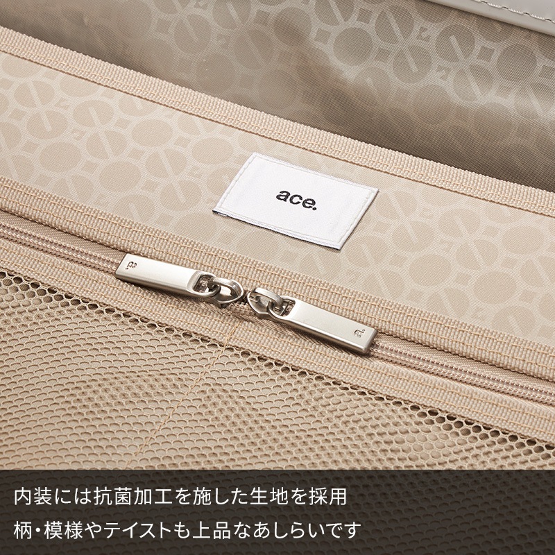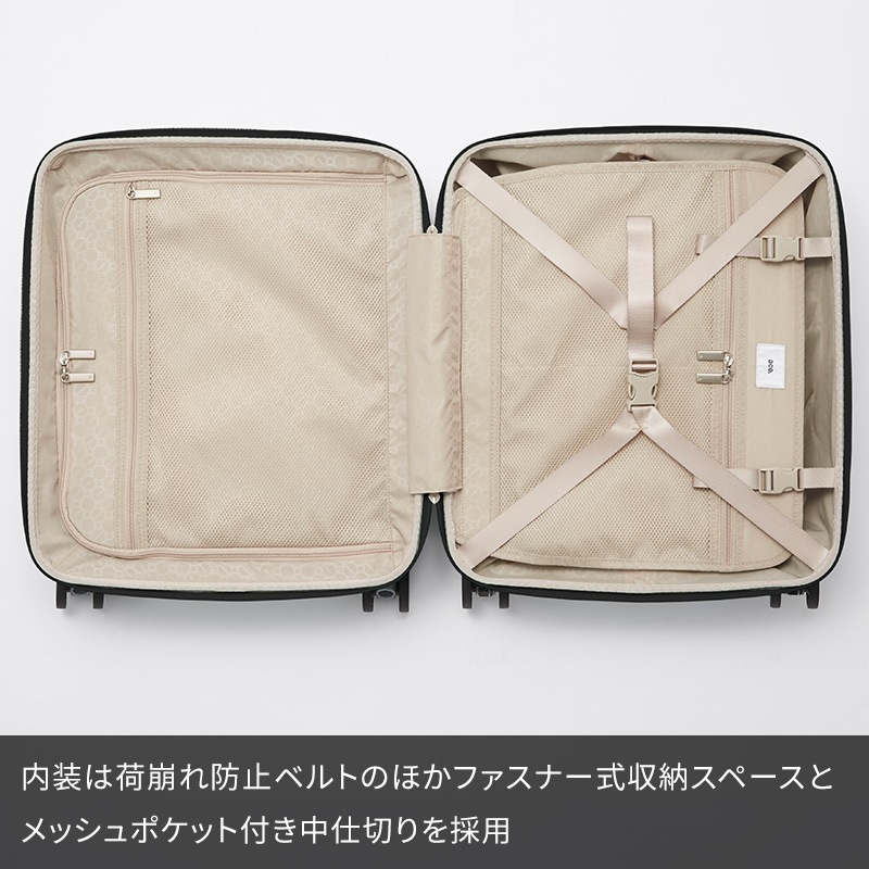 ・内装はファスナー式収納スペースとメッシュポケット付き中仕切りを採用