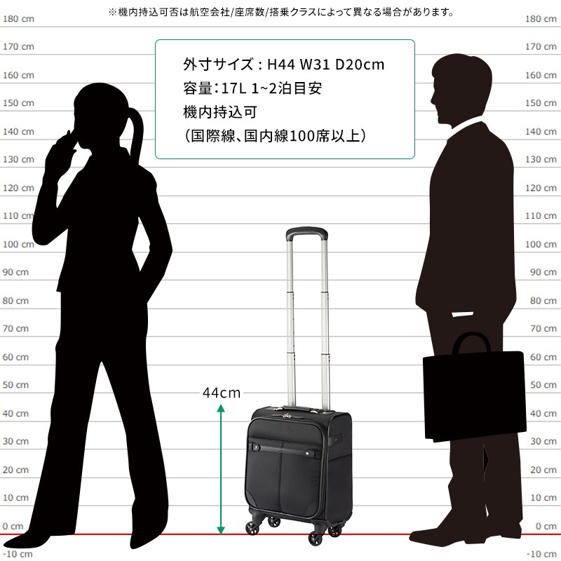 外寸:約H44×W31×D20cm(キャスター、ハンドル部を含む最も外側の寸法)