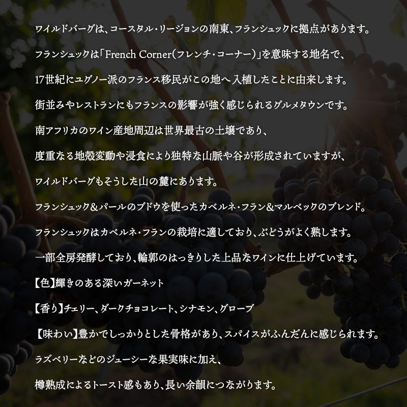 フランシュック&パールのブドウを使ったカベルネ・フラン&マルベックのブレンド。