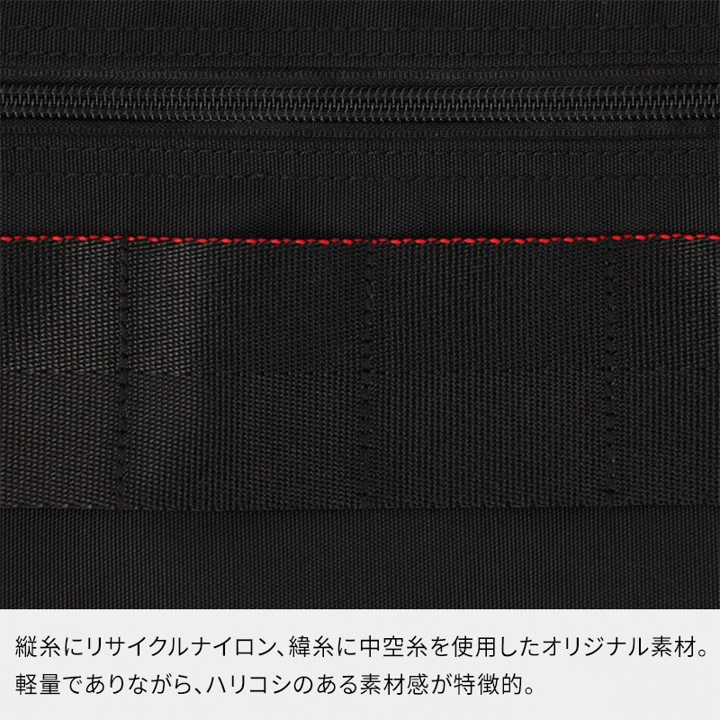 ・縦糸にリサイクルナイロン糸、緯糸に中空糸を使用したオリジナル素材をメインに使用。