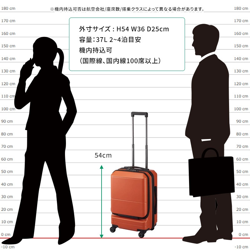 ・国際線、国内線100席以上の航空機に持ち込み可能。2〜3日の旅行向け。
