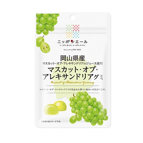 岡山県産マスカット・オブ・アレキサンドリアの果汁を使用したグミです。