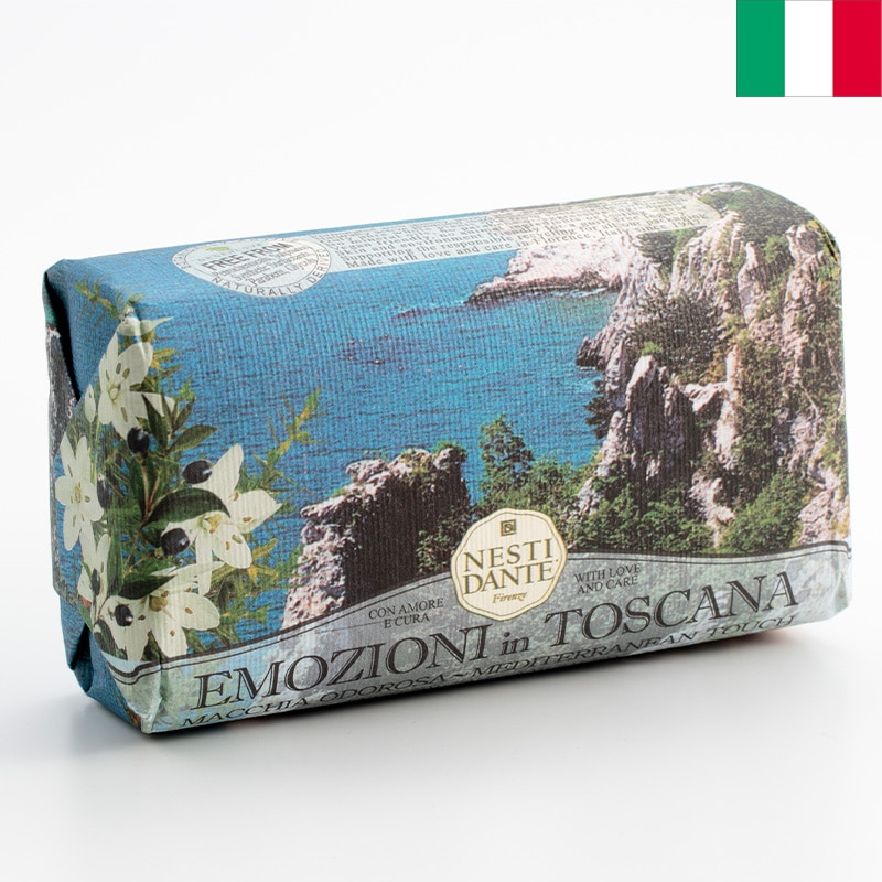 イタリアの豊かな自然からうまれるフラワーエキスやフルーツエキスをふんだんに練り込んだ100%植物性ソープ。